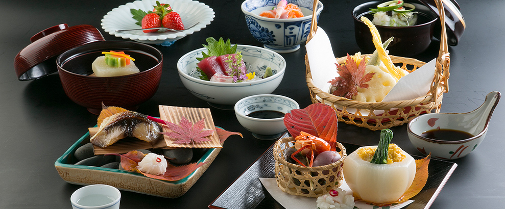 We serve traditional Japanese dishes with an appetizer, raw and grilled fish, tempura, rice and soup etc.